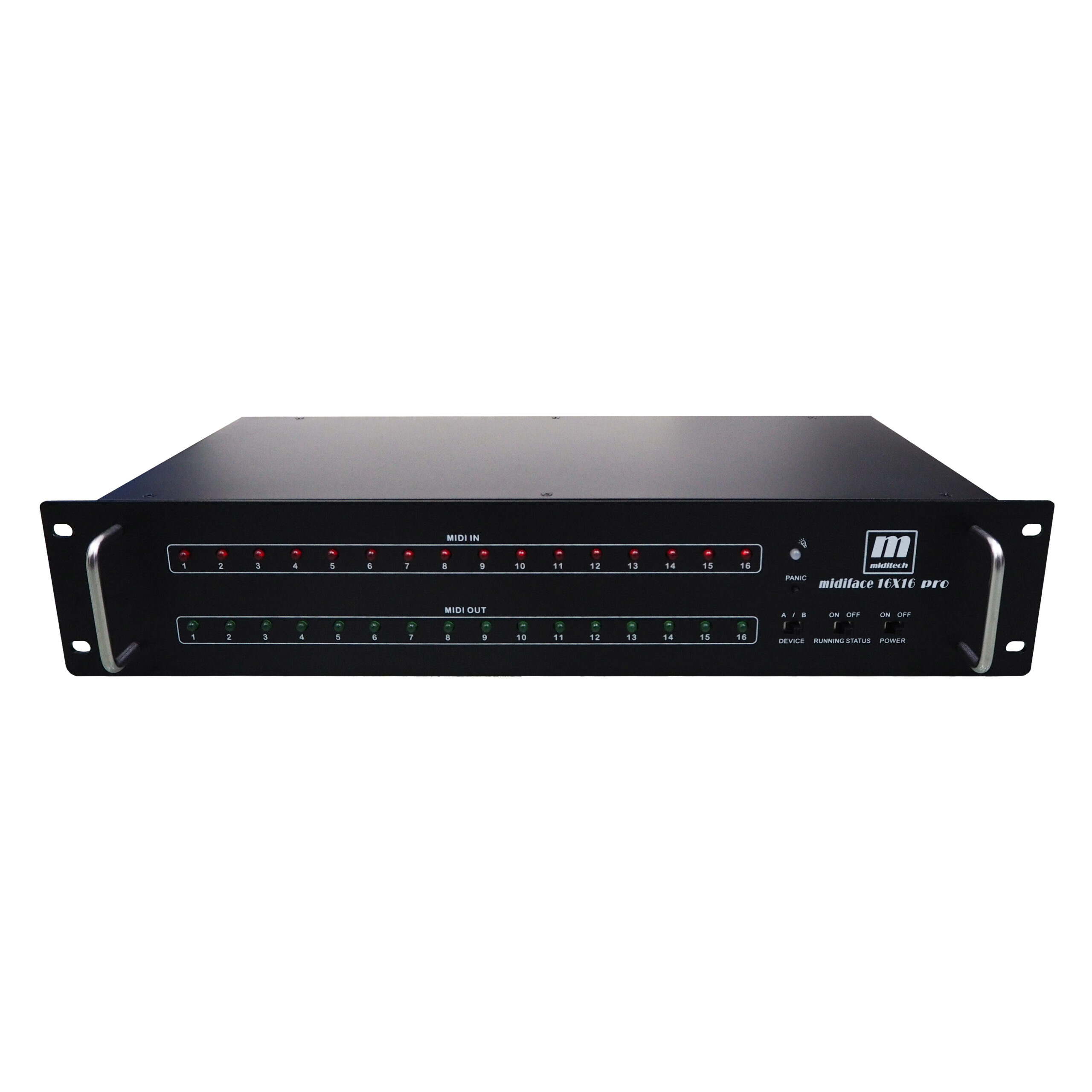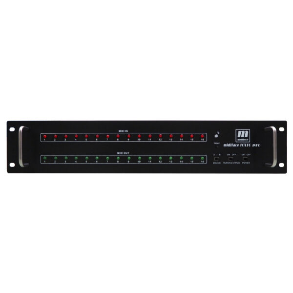 The Midiface 16×16 Pro is the perfect solution for anyone who wants to reliably connect multiple MIDI devices. With a total of 256 MIDI channels in a rugged 19-inch 2U chassis, this USB MIDI interface delivers impressive performance and rock-solid stability for both studio and live use.
